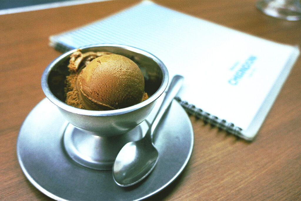 El menú es amplio y distintivo. Hay helados de crema —vainilla, chocolate, pistache, nuez, fresa, mamey, coco, plátano, entre otros— y nieves de agua hechas con fruta natural, como limón, mango, tamarindo, zapote o guanábana. A ellos se suman los postres especiales, que no sólo son deliciosos, sino que parecen una obra de diseño gráfico vintage: la Cassata Siciliana, el Moka Glace o el Napolitano Arlequín.