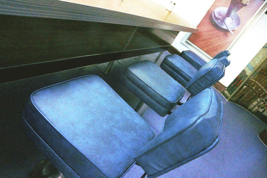 Entrar a Chiandoni es detenerse en la década de los años cincuenta. Los mosaicos, la barra, las mesas de madera, las sillas de color azul suave y la caja registradora antigua construyen una atmósfera que parece inmune al paso del tiempo.